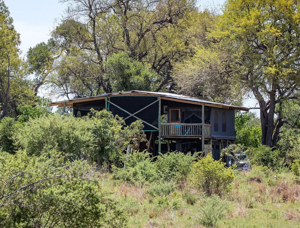 For smaller groups or nature lovers looking for a more authentic experience, Termite Tented offers two generously sized twin en-suite tents on raised wooden decks. A separate kitchen and dining area keep things convenient, while an elevated lounge beneath a majestic leadwood tree offers breathtaking views over the iconic Moremi Game Reserve.